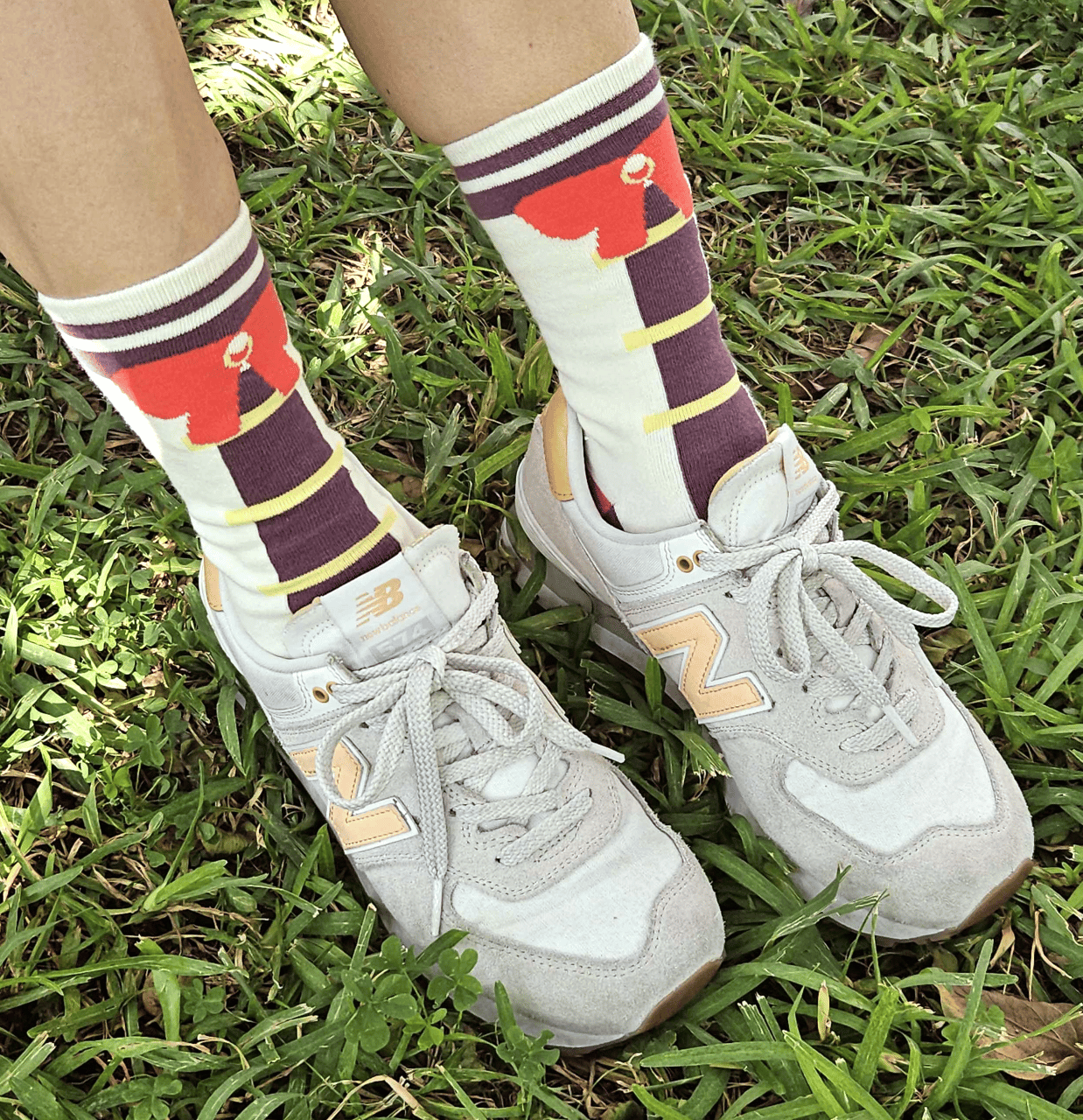 Inspired by Goldship's boots!! The text on the bottom reads "Wai wai~!" reminiscent of her infamous win pose. The design also looks really good when paired with light shoes! I designed this with the intent of matching with the Golshi tee.